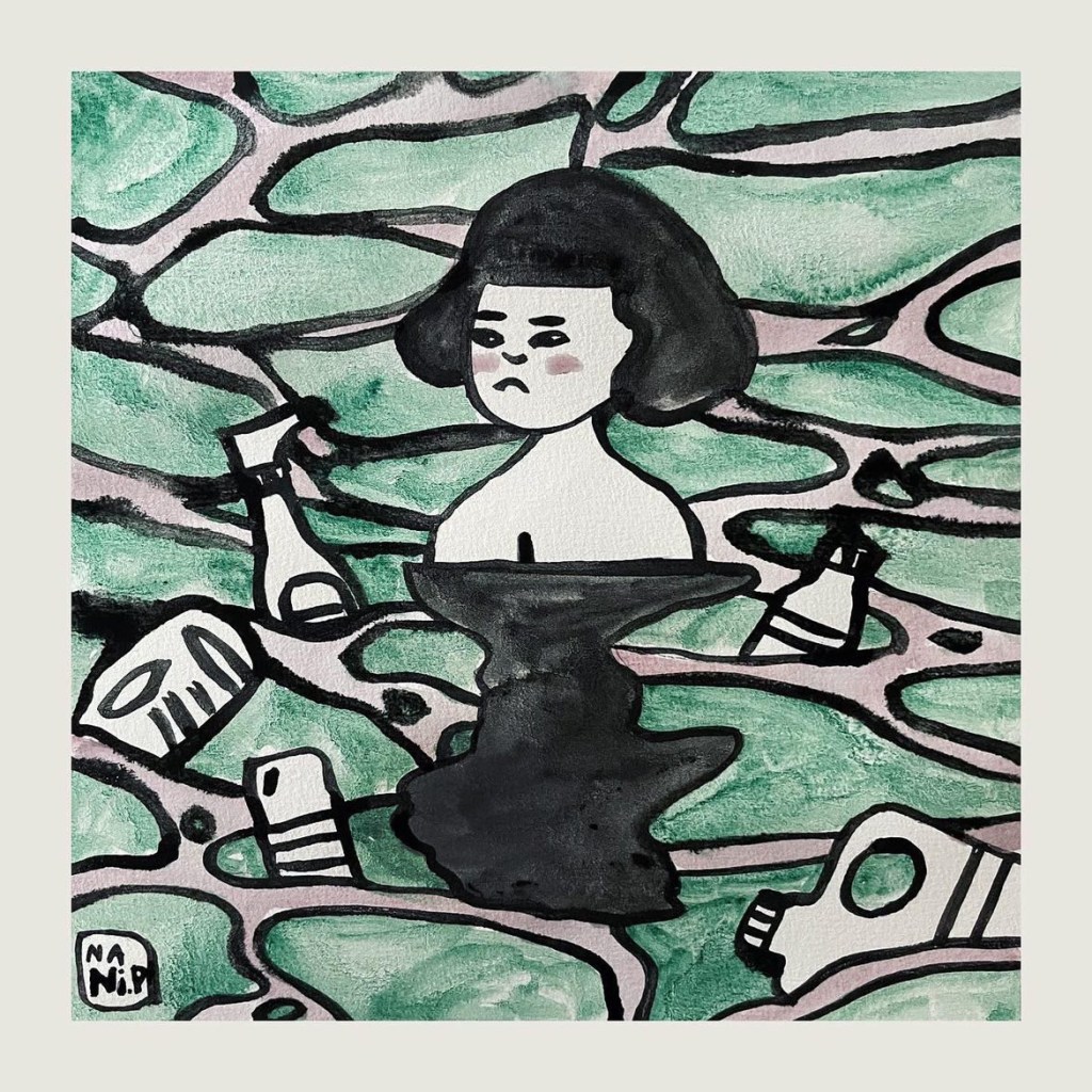 Melbourne Based Illustrator and Ceramicist, Nani Puspasari used a 5 colour Fish Safe Paints palette to create “Contaminated”. Check out her work at www.designani.com.
